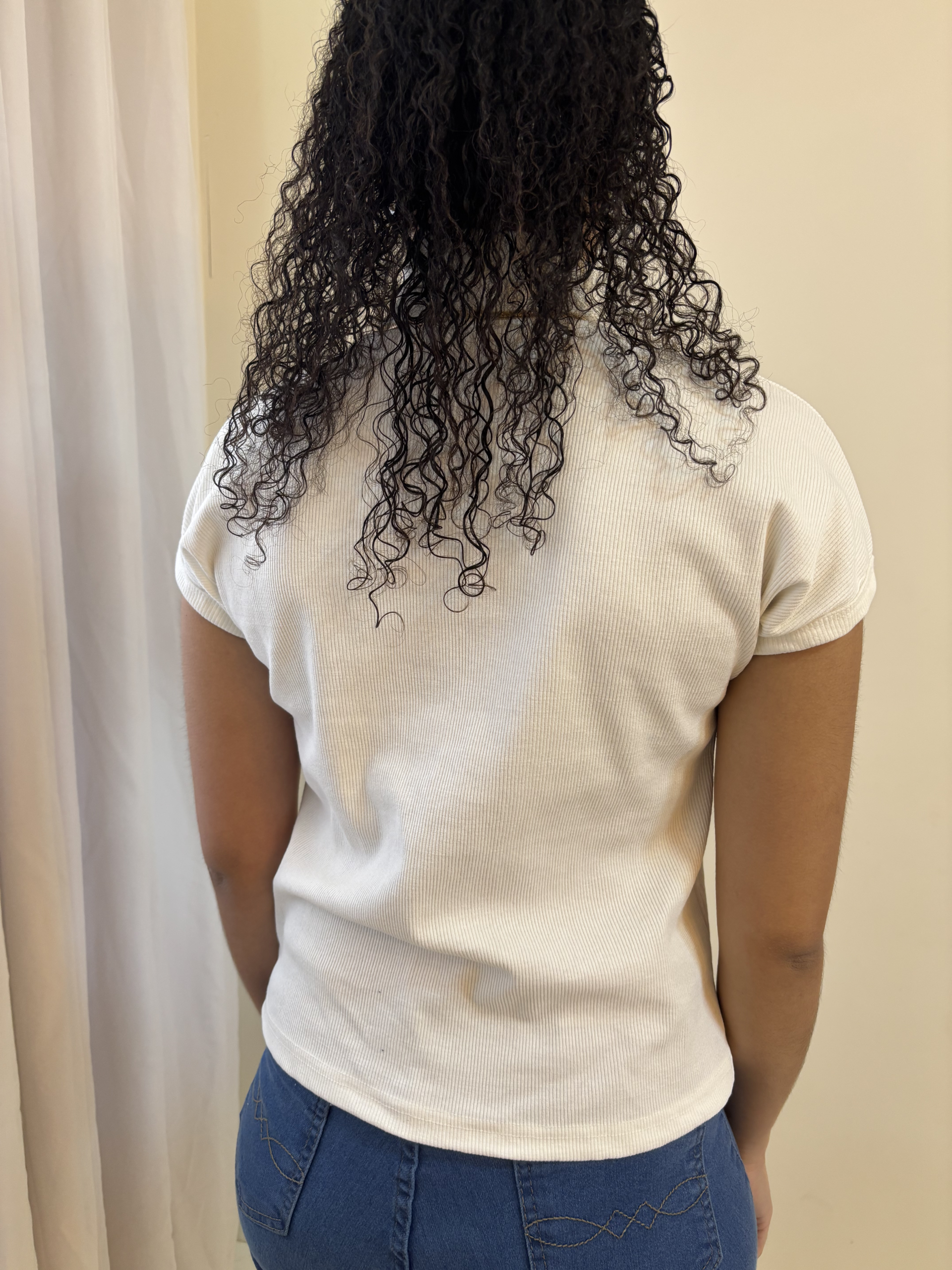 Blusa Jade – Canelada Branca: blusa estilosa e confortável, perfeita para diversas ocasiões.