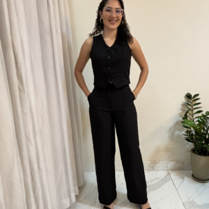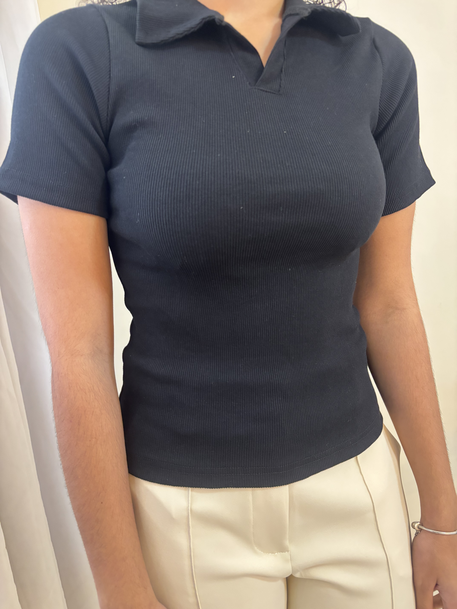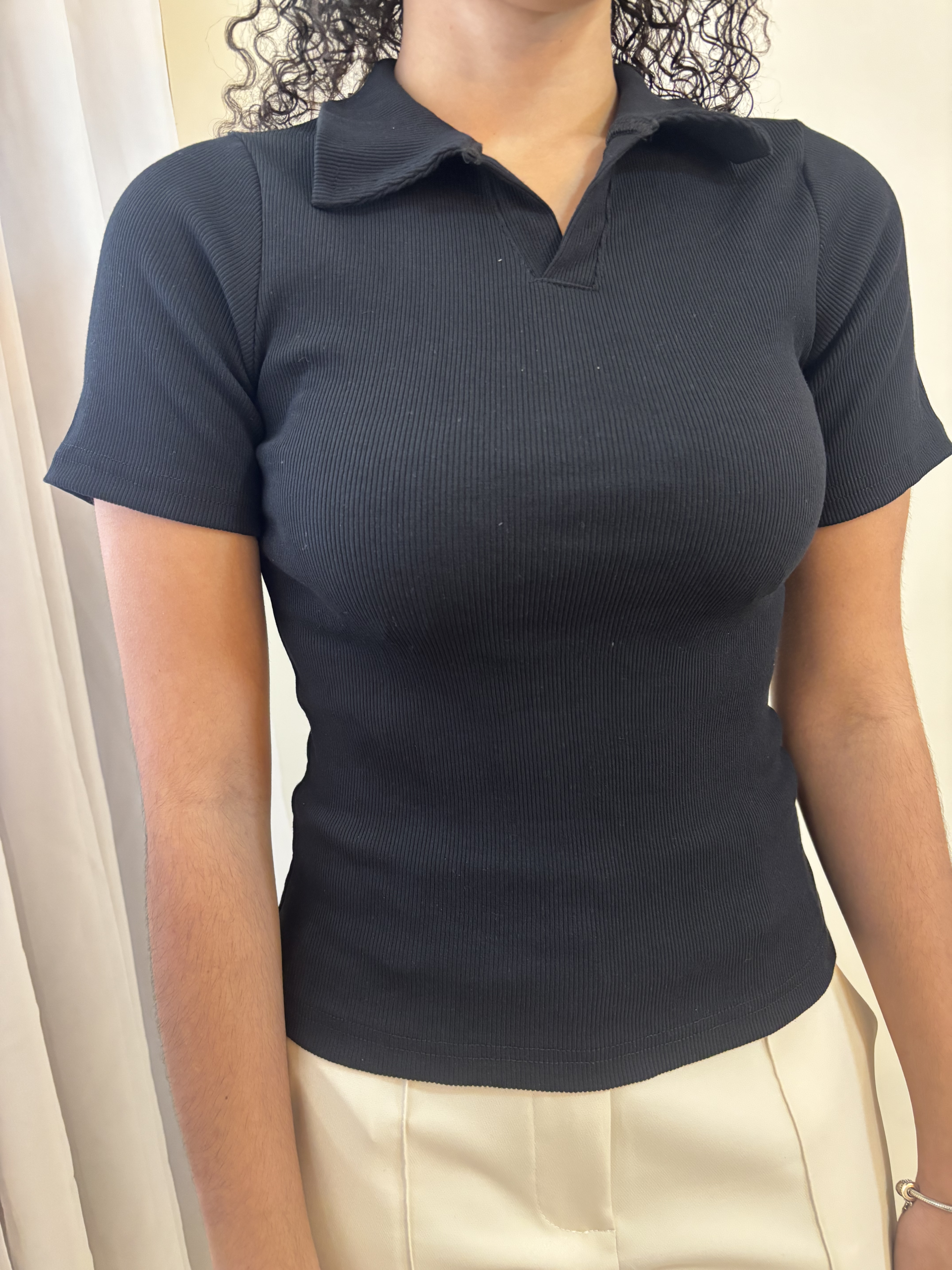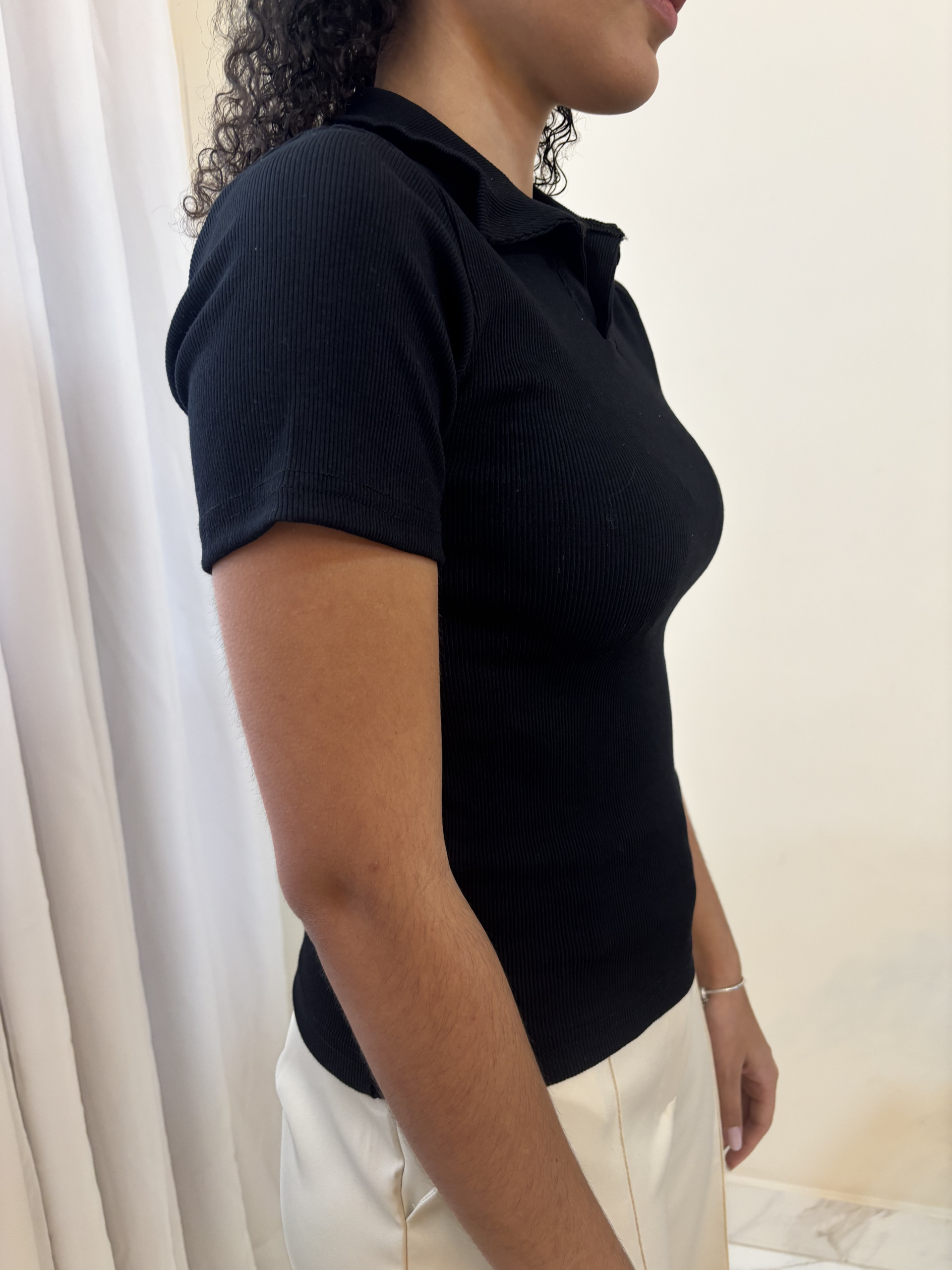Blusa Polo – Preta: modelagem de alfaiataria com caimento impecável e toque sofisticado.