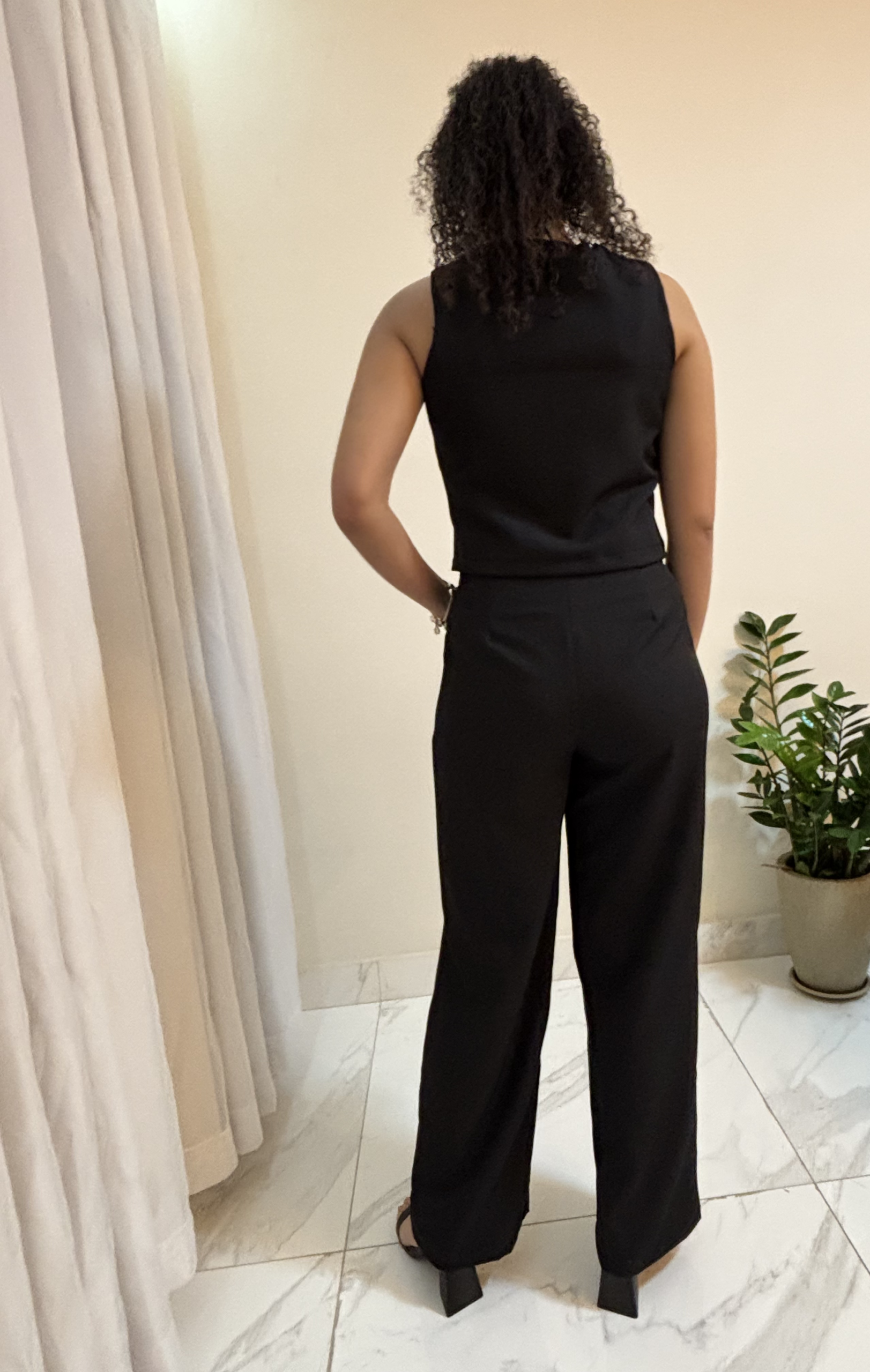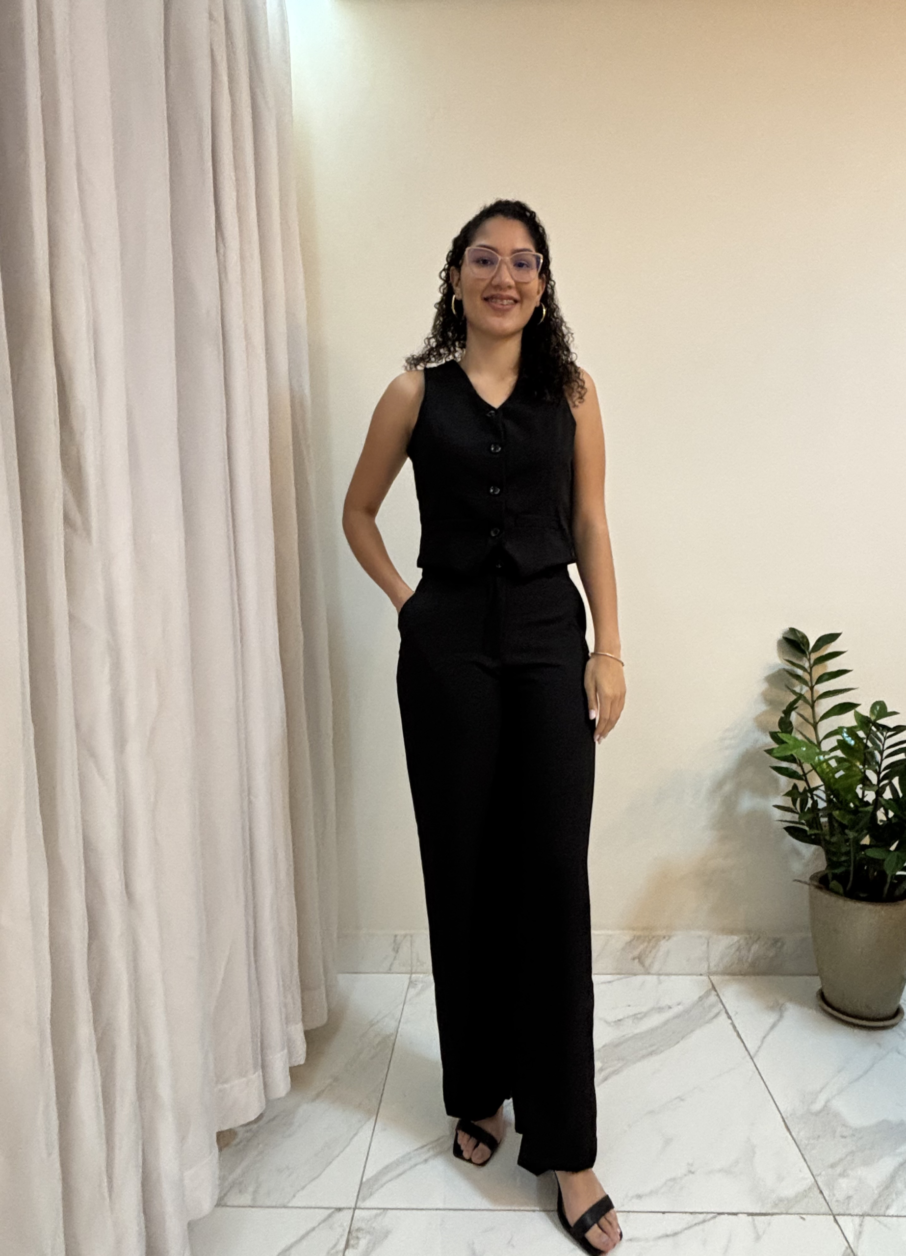 Conjuto Leticia – Alfaitaria Preto: modelagem de alfaiataria com caimento impecável e toque sofisticado.